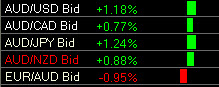 Example #1 In this instance the AUD is strengthening across the board so if your intention was to buy the AUD/USD or AUD/CAD you verify your entry using The Forex Heatmap. This is the simplest forex indicator available.